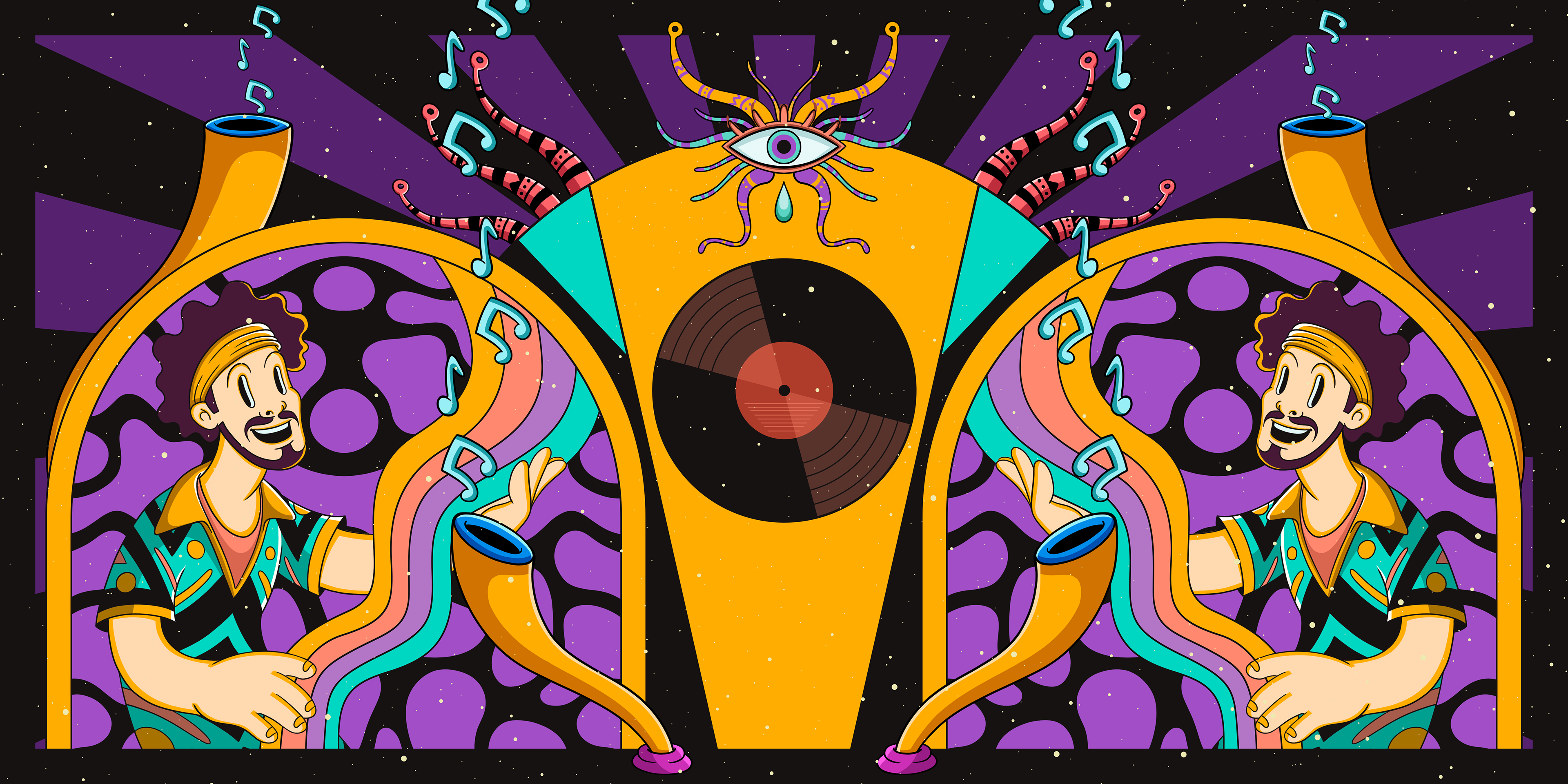 Illustrations I created for the stage performances of amazing artists such as Hey! Douglas, Gaye Su Akyol, and Evrencan Gündüz at the May 19th celebrations hosted by the Istanbul Metropolitan Municipality.